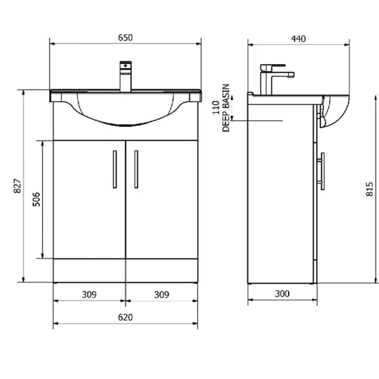 Arley KASS 550 & 650mm 2 Door Basin Unit With Basins