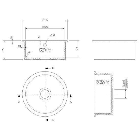 Undermount Single Bowl with Overflow Fireclay Sinks - Matt Black