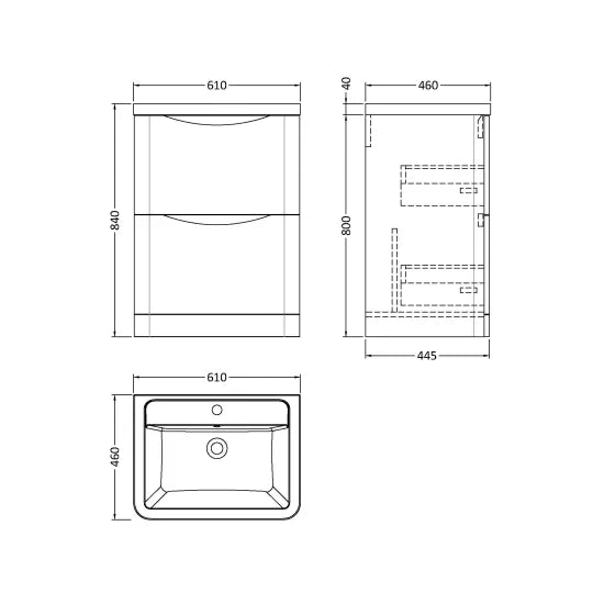 600mm Floor Standing Unit/ 2 Drawer Height: 840MM Width: 600MM Depth: 445MM - LUN301A