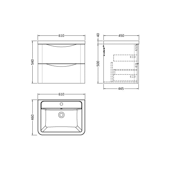 600mm Wall Hung Unit/ 2 Drawer Height: 540MM Width: 600MM Depth: 445MM - LUN302A