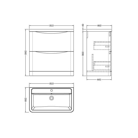 800mm Floor Standing Unit/ 2 Drawer Height: 840MM Width: 800MM Depth: 445MM - LUN303A
