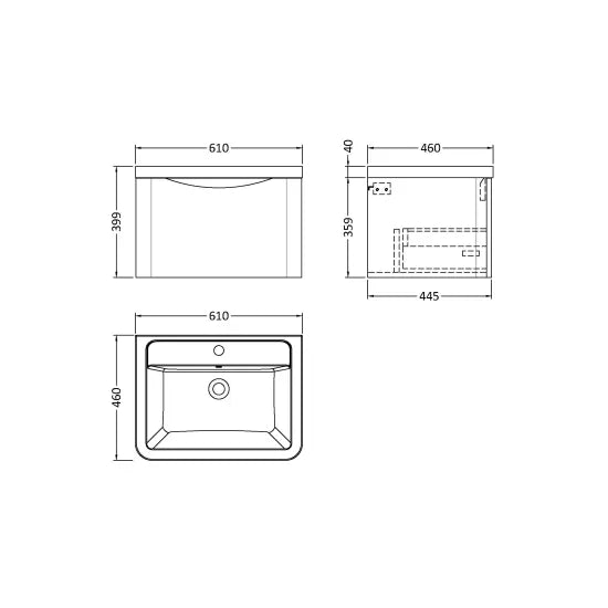 600mm Wall Hung Unit/ 1 Drawer Height: 399MM Width: 600MM Depth: 445MM - LUN305A