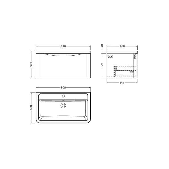 800mm Wall Hung Unit/ 1 Drawer Height: 399MM Width: 800MM Depth: 445MM - LUN306A