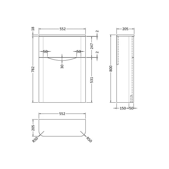 550mm WC Unit Height: 800 MM Width: 550 MM Depth: 205 MM - SML341