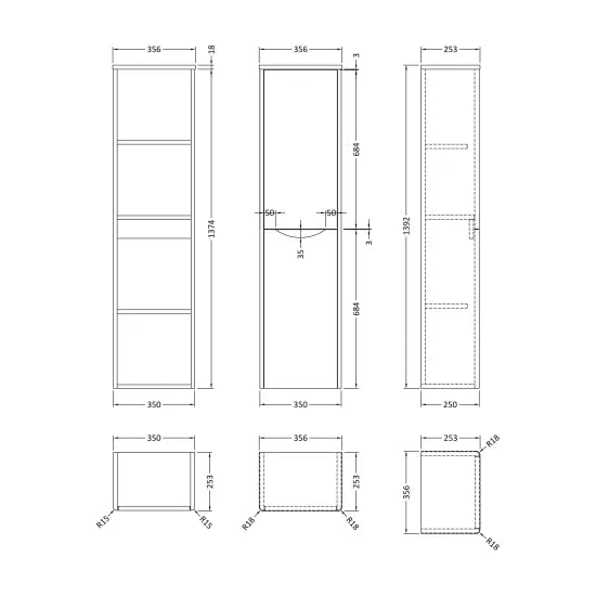 Tall Unit Height: 1392 MM Width: 356 MM Depth: 253 MM - SML341
